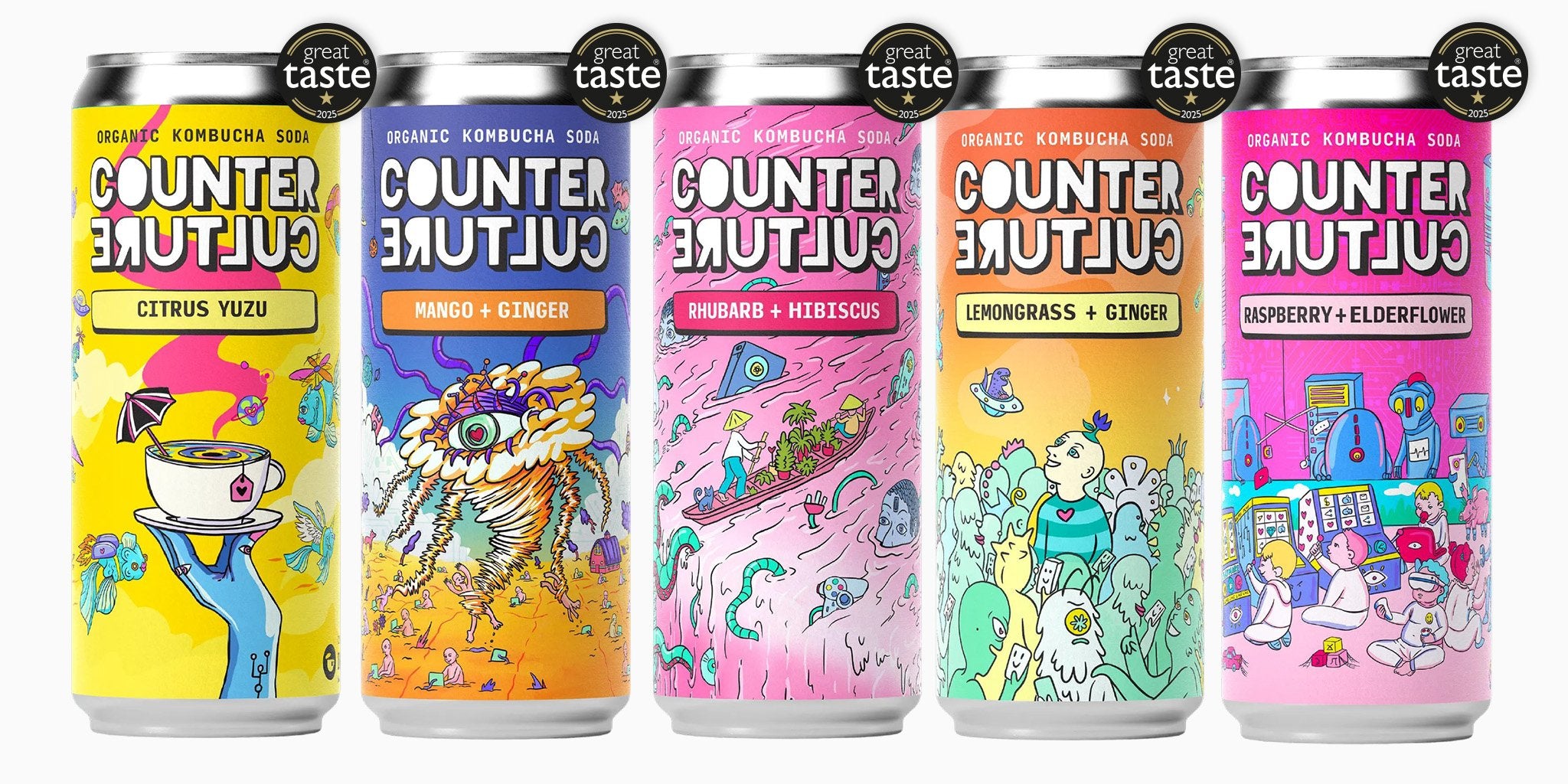 Four Great Taste award-winning organic kombucha sodas, brewed with high-grade ingredients for people who live for more than mass-produced fizz.